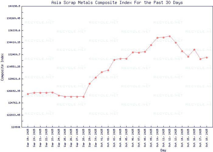 Asia Scrap Metals Composite Index for Saturday Oct 18, 2025 132,006.38